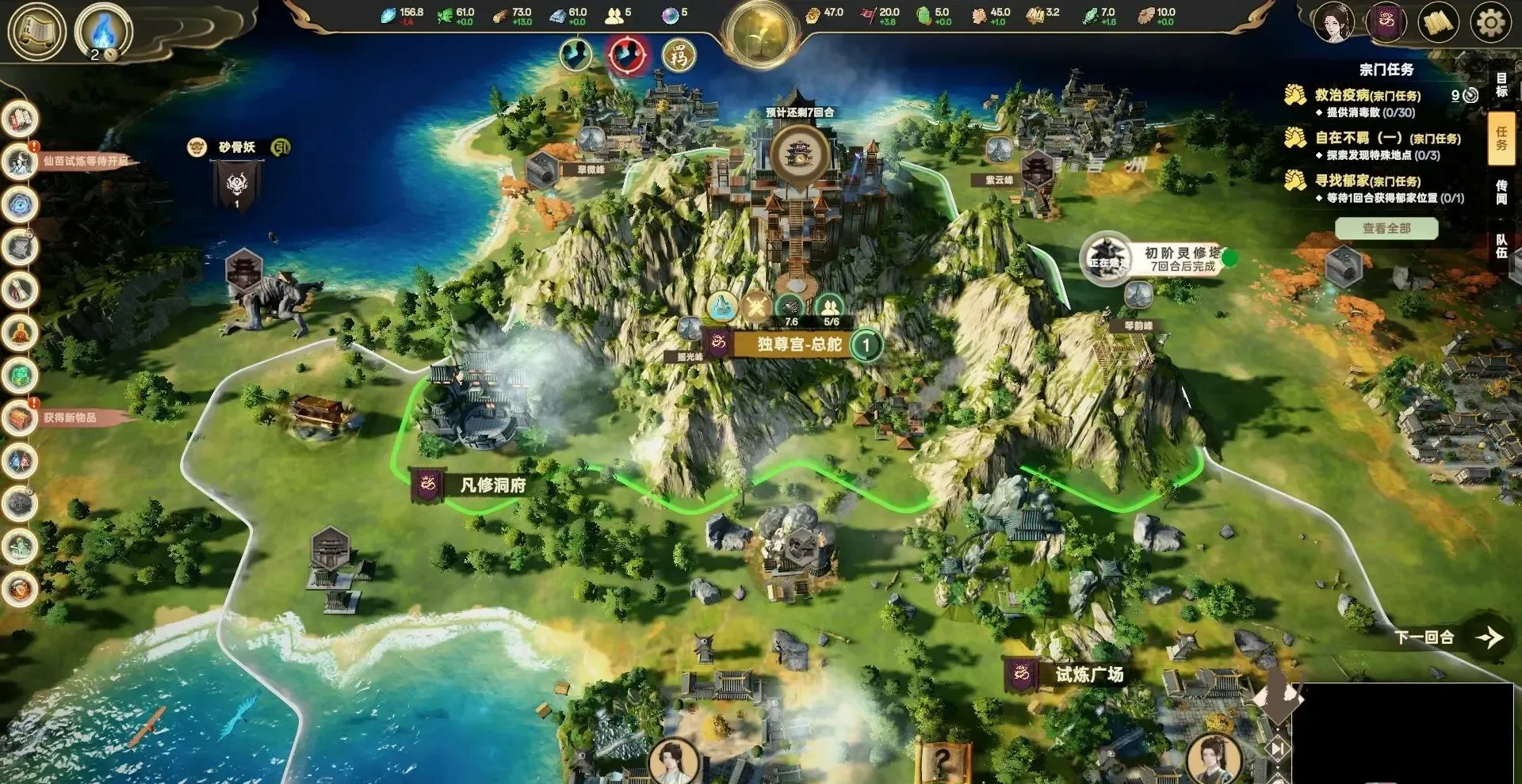 3. 宗门建设:灵田、炼丹房、炼器室、护山大阵自由布局,资源循环。