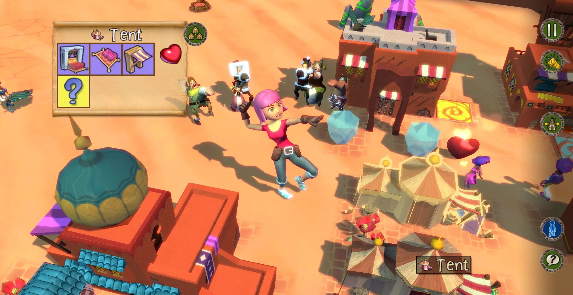 1. 自由建造:四大主题地貌(平原、冰原、沙漠、火山)解锁百余种建筑蓝图,房屋、工坊、装饰随心摆放,打造专属风格。