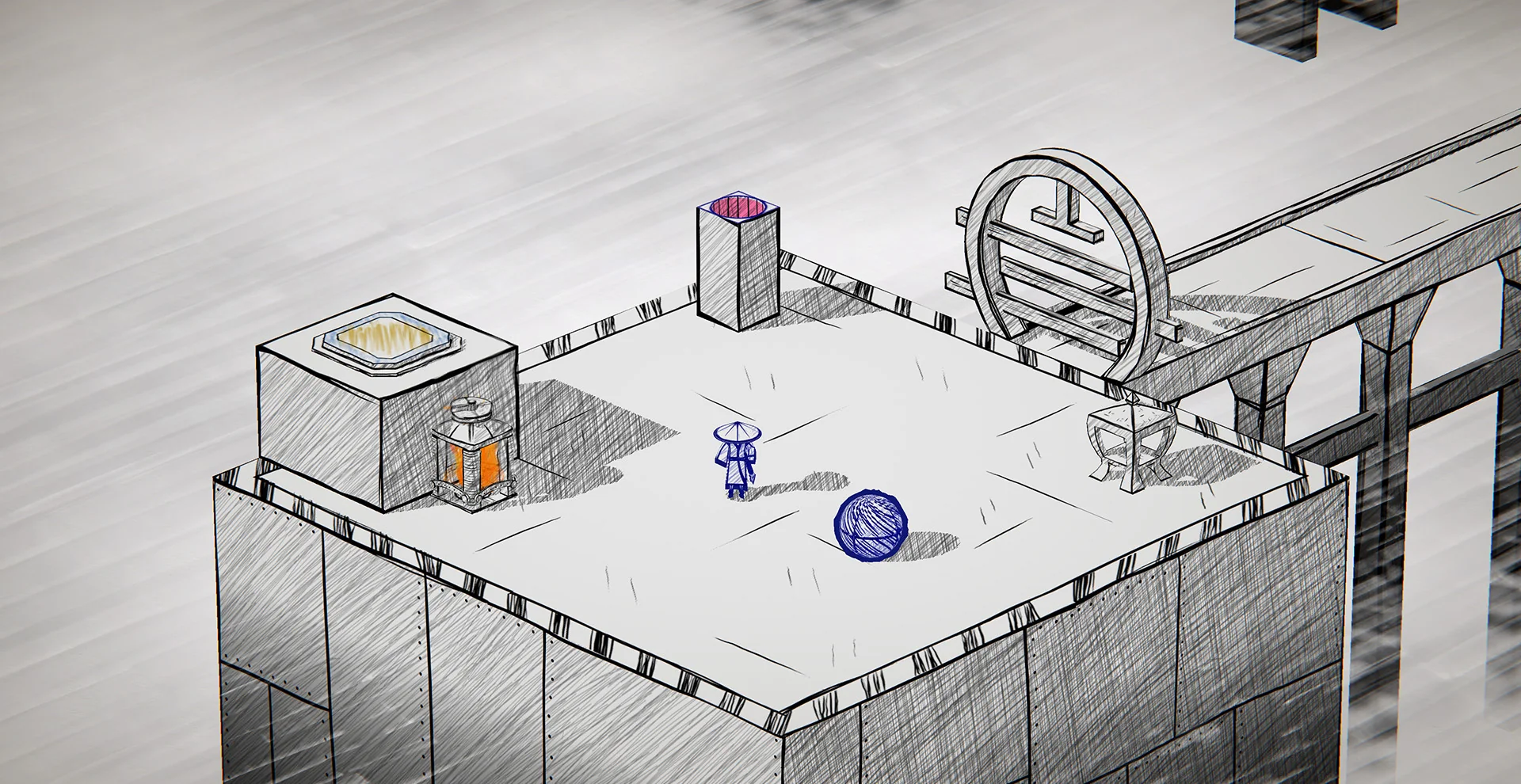 2. 几何解谜核心:拖拽、旋转、绘制物理方块,搭建通路,点燃篝火、借风浮空等关卡机制层层递进;