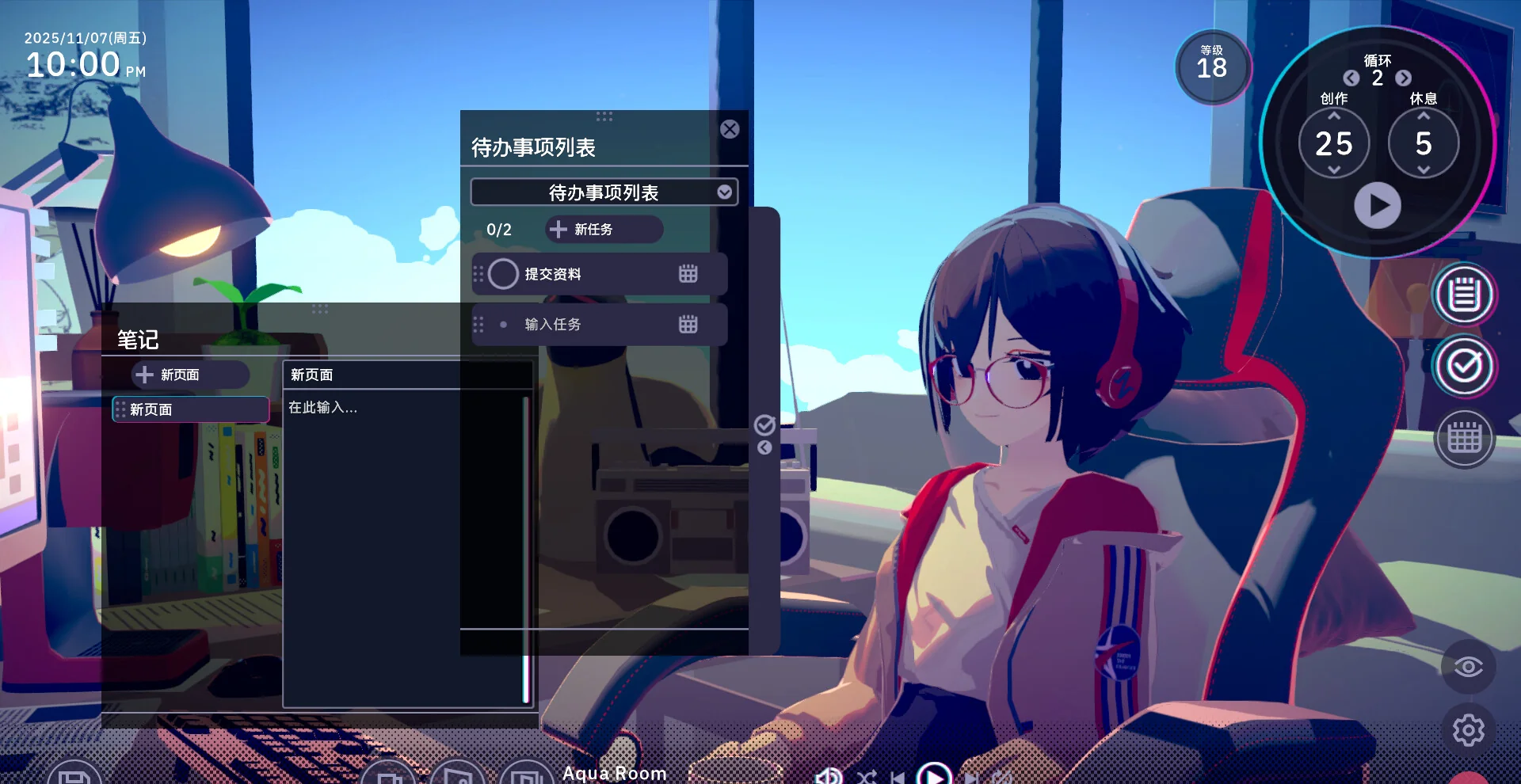 《放松时光:与你共享Lo-Fi故事》是一款由Nestopi Inc.打造的治愈系有声小说+专注工具混合新作。玩家将与热爱写作的少女“聪音”并肩,通过“协作通话系统”实时互动,自定义Lo-Fi音乐、雨声、咖啡厅环境音与动态背景,打造独一无二的沉浸学习/工作空间。内置番茄钟、待办清单、专注统计,让效率与温情同行。随着专注时长累积,解锁更多剧情、手绘画稿与聪音心情日记,体验“陪伴式”成长。游戏支持简繁中文等7种语言,容量仅928MB,低占用秒启动,是考研、码字、加班族的减压神器。