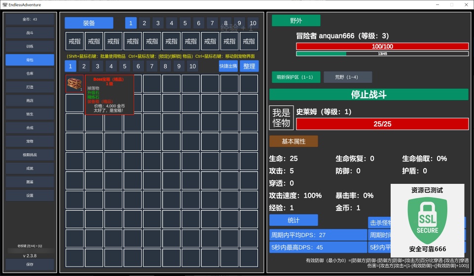 《无尽的冒险》是一款海外独立团队打造的挂机刷宝类RPG,v2.3.8中文版已完整汉化,解压即玩。玩家将扮演勇者,通过自由分配属性点、收集千百种材料打造神装,挂机与手动操作并存,一路击败史诗级怪物,最终挑战邪恶魔王,守护世界和平。游戏已于2025年8月1日正式登陆Steam,收获“特别好评”。